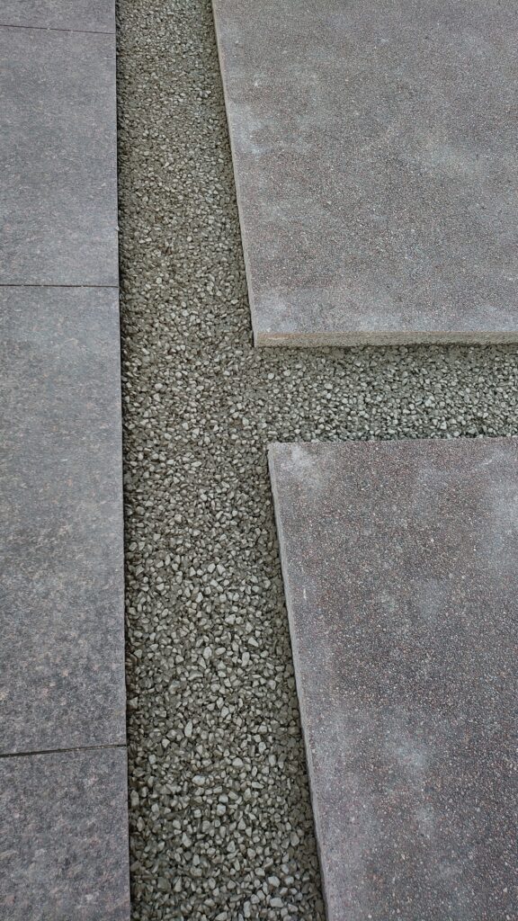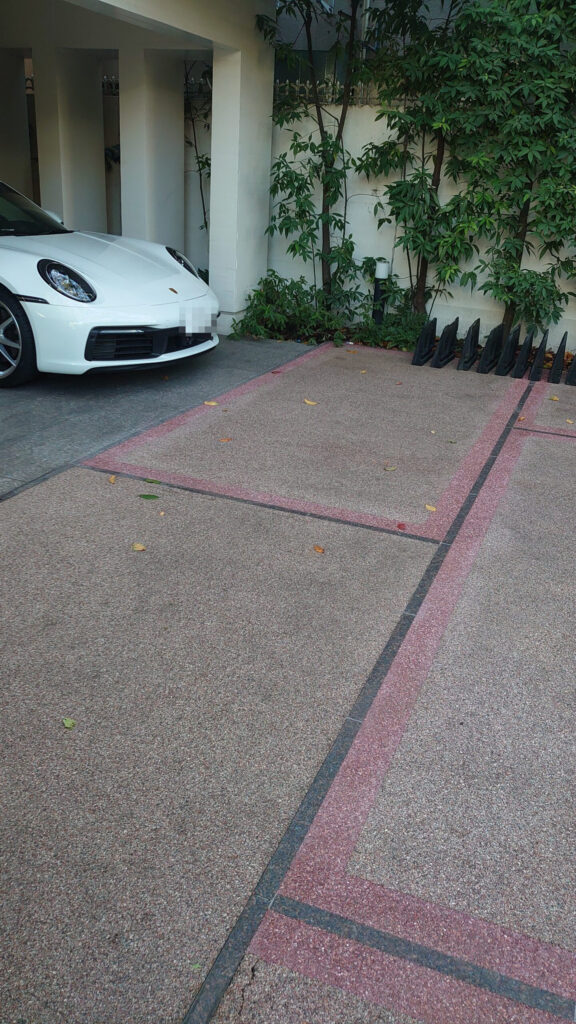 他社製品の洗い出しコンクリートを施工していましたが、水たまりが頻繁に発生するとのことで相談があり、その排水対策として透水性クリスタが選定されました。
