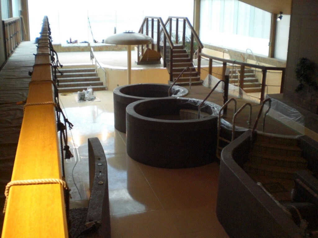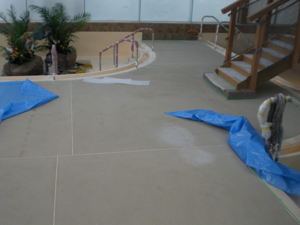 伊東市 ホテル内温泉施設床 コンクリート洗い出し(非透水)
